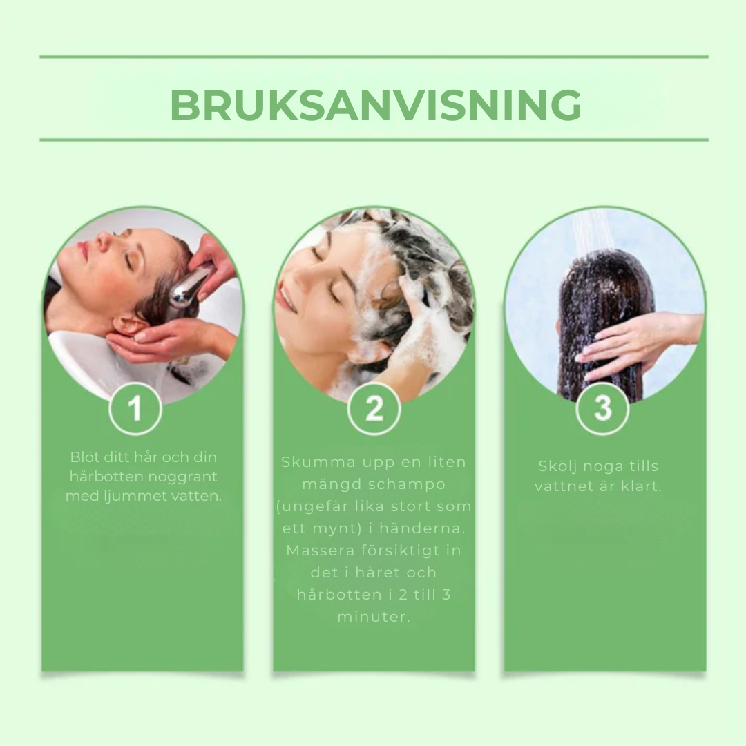 “Äntligen ett schampo som lugnar min hårbotten utan att torka ut.” — Lina, Västerås 🌿