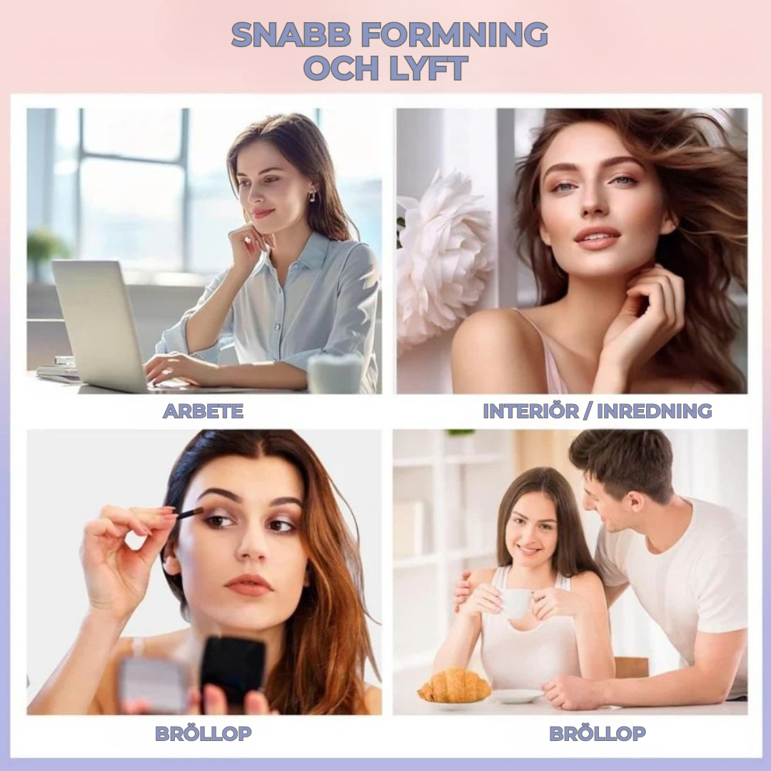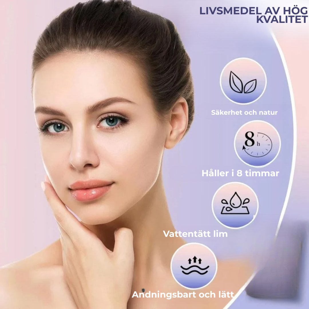 Drömmer du om yngre och fräschare hud? Med Lifty™ kan du ge ditt ansikte en synlig lyfteffekt på bara några sekunder – utan nålar eller operation. Den osynliga tejpen döljs diskret under håret eller huden och ger ett naturligt men samtidigt slående resultat.