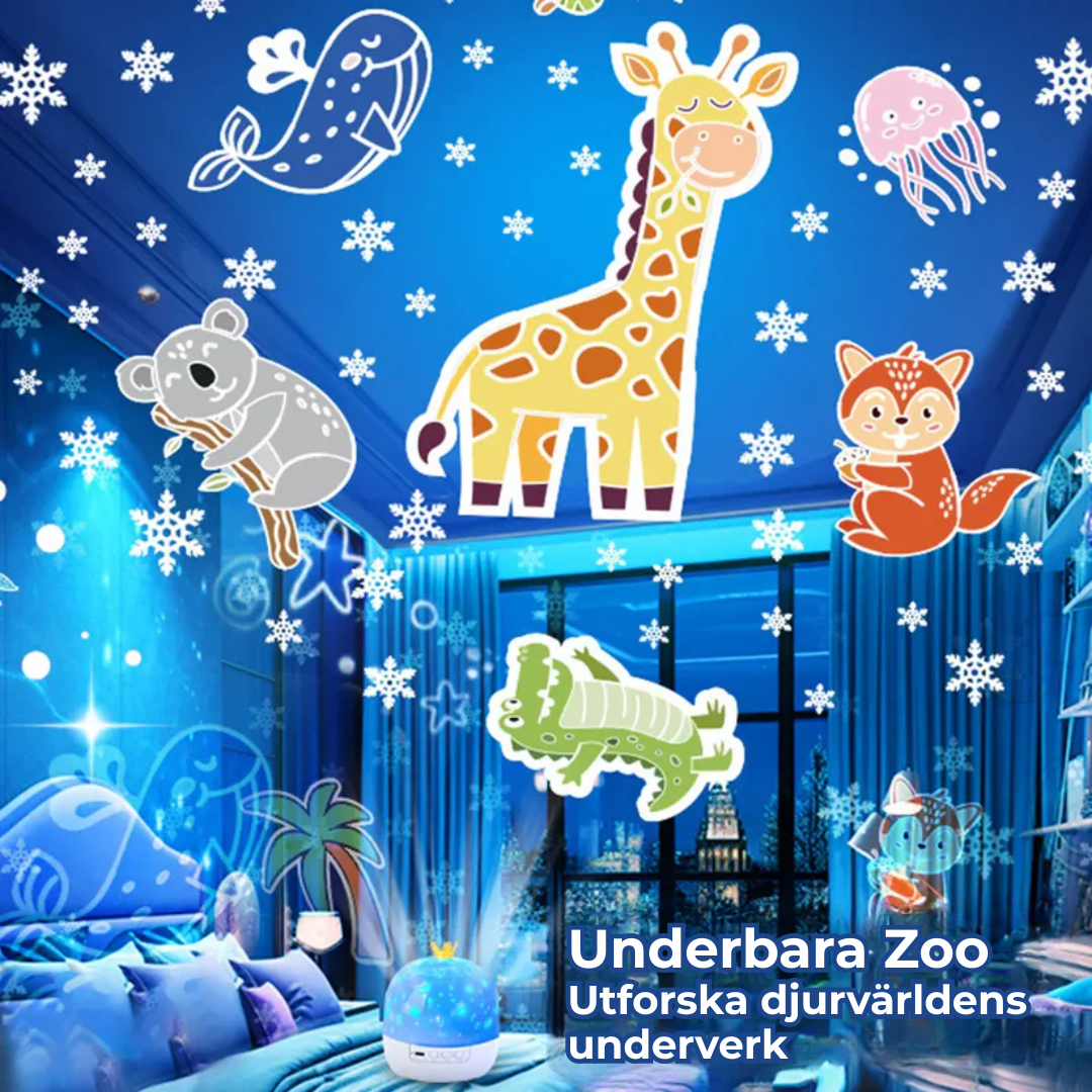 Noovii™ är en förtrollande 2-i-1 nattlampa och projektor som förvandlar barnrummet till en sagovärld. Den sprider ett mjukt, tryggt sken och projicerar vackra motiv på väggar och tak – från stjärnklara himlar till lugna havsvågor. Med ett enkelt knapptryck fylls rummet av lugnande ljus och milda melodier som hjälper ditt barn att somna i ro.