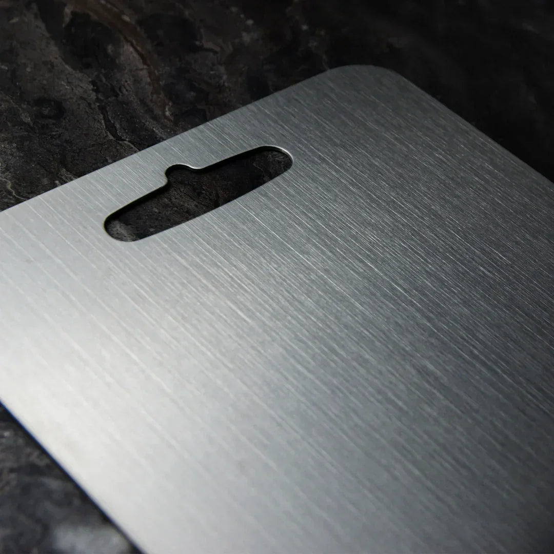Till skillnad från traditionella skärbrädor som hyser bakterier, absorberar lukter eller gör dina knivar slöa, erbjuder titan överlägsen prestanda:
