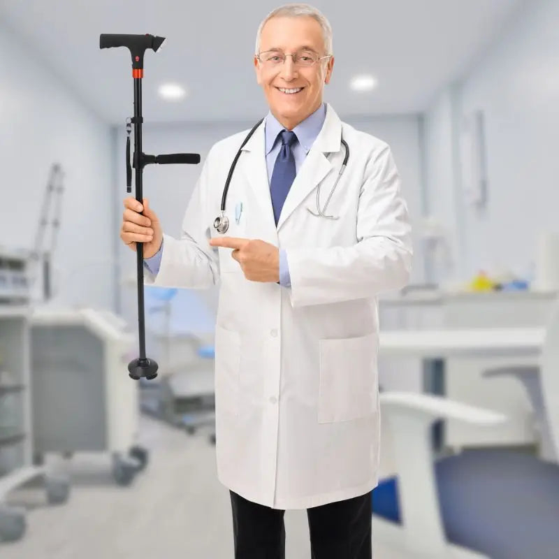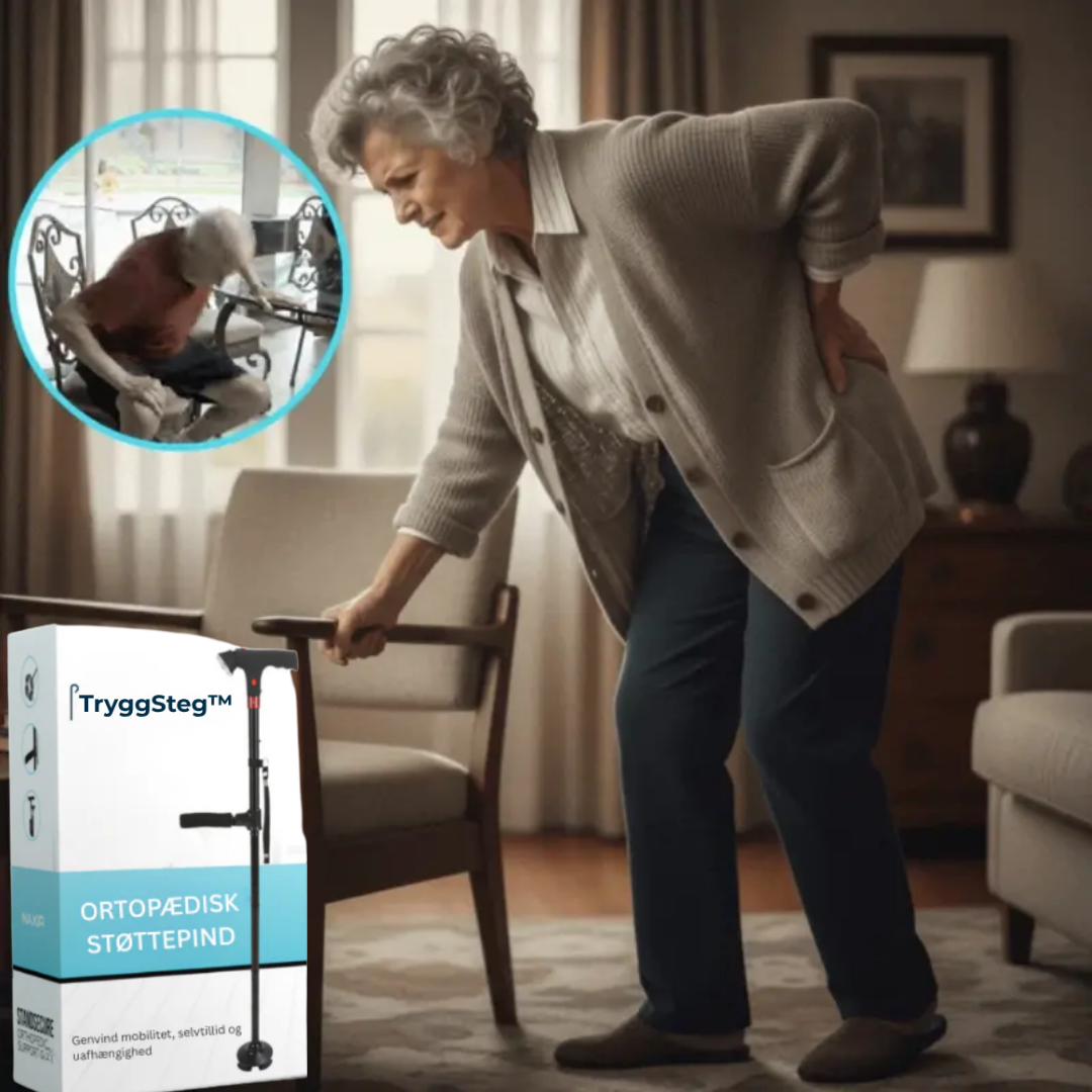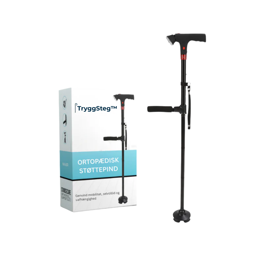 TryggSteg™ är en modern stödstav med en självbärande bas, ergonomiska dubbla handtag och ortopediskt godkänd stabilitet. Den hjälper kroppen att återfinna sin naturliga balans och gör det lättare att resa sig upp, gå stadigt och röra sig tryggt – både inne och ute.